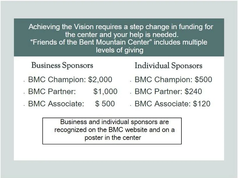 Be a Part of the “Friends of the Bent Mountain Center”